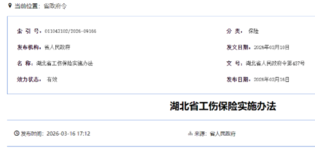 湖北省人民政府发布《湖北省工伤保险实