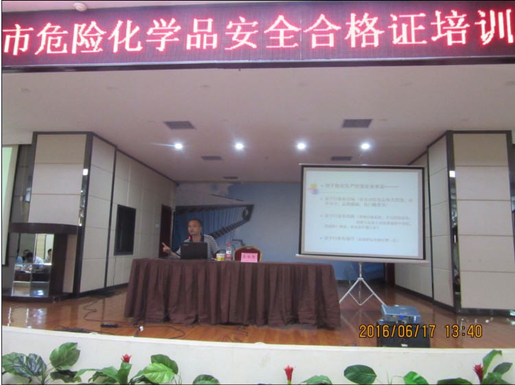 为提高危险化学品生产、经营单位主要负责人、安全管理人员的安全素质,强化企业安全生产主体意识,6月16-17日,由湖北中天职业教育培训中心举办的2016年第一季度危险化学品生产、经营单位安全培训班在丁字桥城市便捷酒店正式开班。