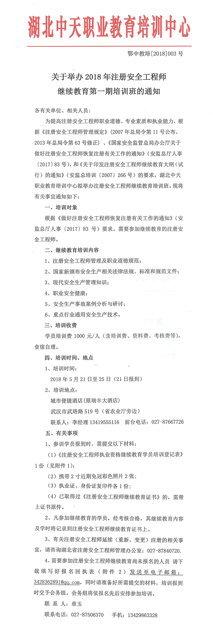 关于举办2018年注册安全工程师继续教育培训班的预通知