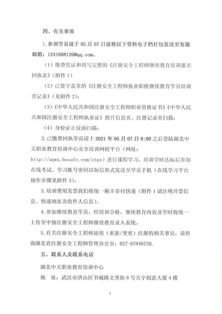 关于2021年注册安全工程师继续教育(第二期)的通知