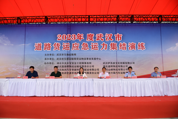 为全面提高面对汛情等自然灾害时的应急保障能力,并深入开展2023年以“人人讲安全,个个会应急”为主题的“安全生产月”活动,6月2日上午9时,由武汉市交通运输局主办、局货运物流事业发展中心承办、湖北中天天安安全工程师事务所等单位协办的2023年度武汉市道路货运应急运力集结演练活动在武汉鑫泰辉物流运输有限责任公司停车场举行。