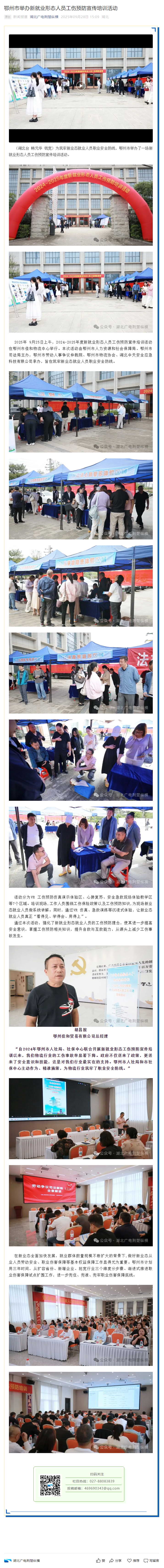 在新业态全面加快发展,就业群体数量规模不断扩大的背景下,做好新业态从业人员劳动安全、职业伤害保障等基本权益保障工作显得尤为重要。9月25日上午,2024-2025年度新就业形态人员工伤预防宣传培训活动在鄂州市佳和物流中心举行。本次活动由鄂州市人力资源和社会保障局、鄂州市司法局主办,鄂州市劳动人事争议仲裁院、鄂州市物流协会、湖北中天安全应急科技有限公司承办,旨在筑牢新业态就业人员职业安全防线。本次活动共发放宣传资料1000余册,参与人数200余人。
