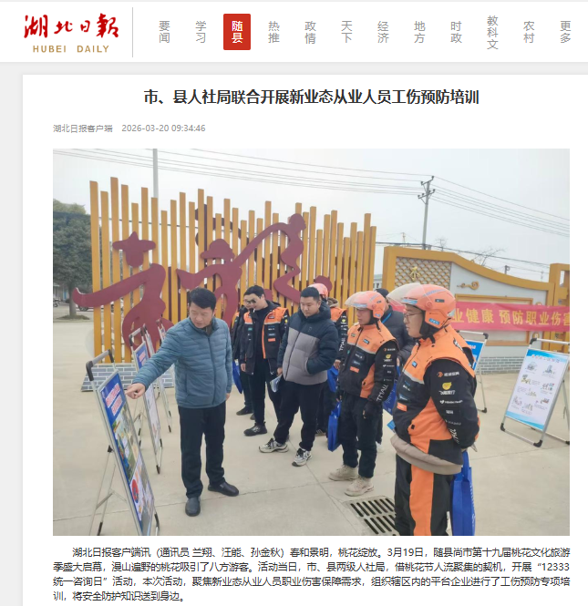 三、湖北日报 | 随州市、随县人社局联合开展新业态从业人员工伤预防培训