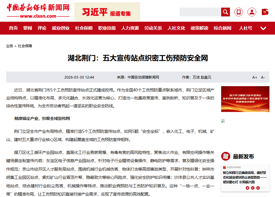 一、中国劳动保障报 | 湖北荆门:五大宣传站点织密工伤预防安全网