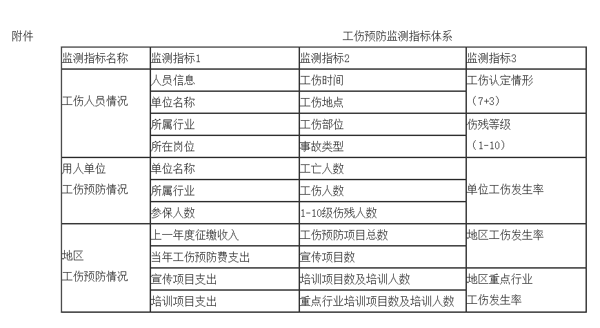 附件:工伤预防监测指标体系