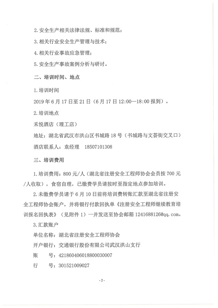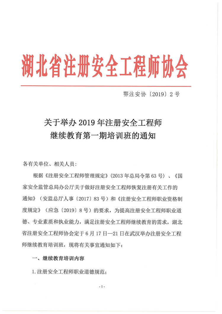 关于举办2019年注册安全工程师继续教育第一期培训班的通知