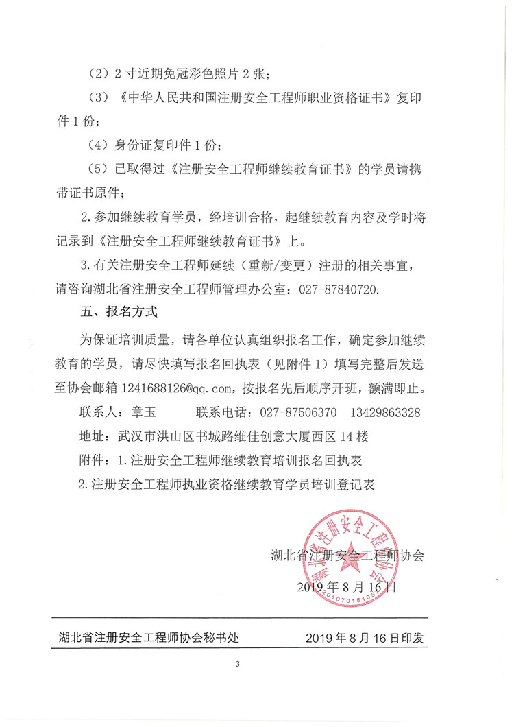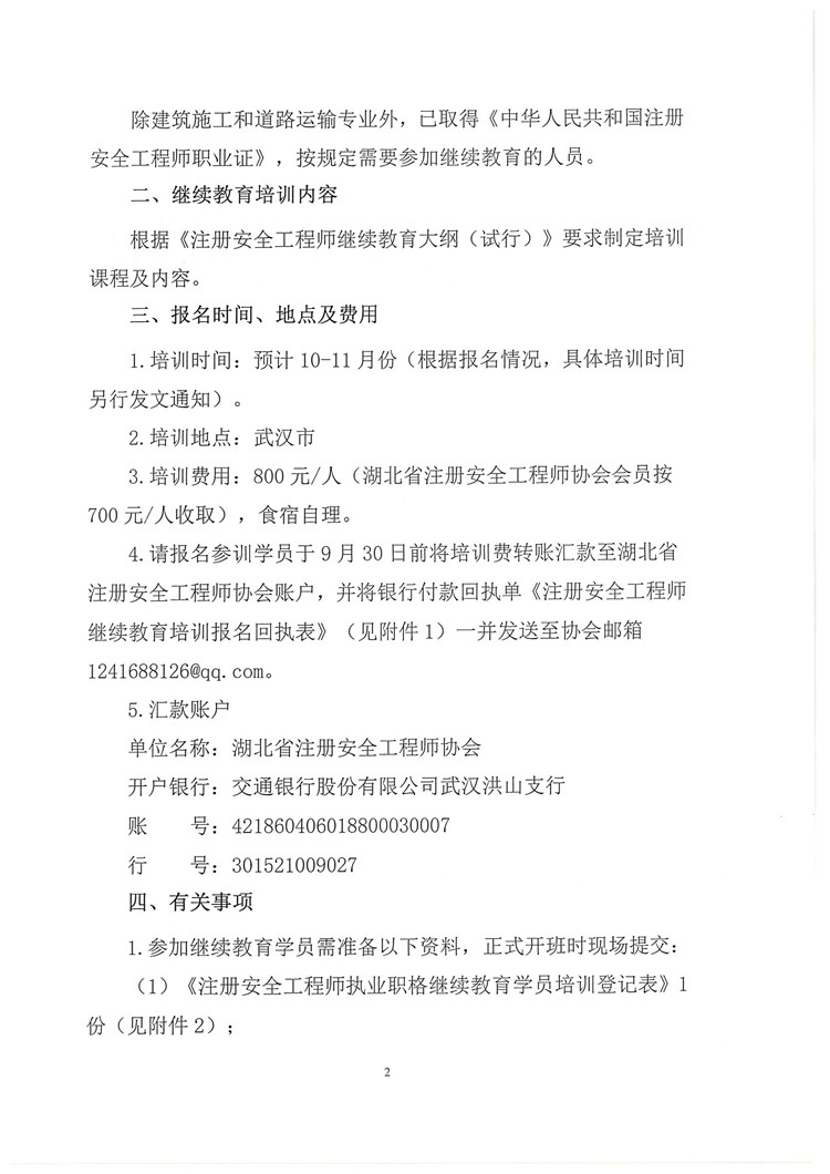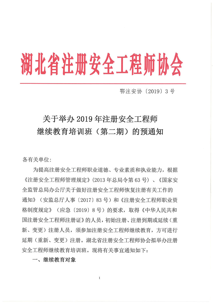 关于举办2019年注册安全工程师继续教育培训班(第二期)的预通知