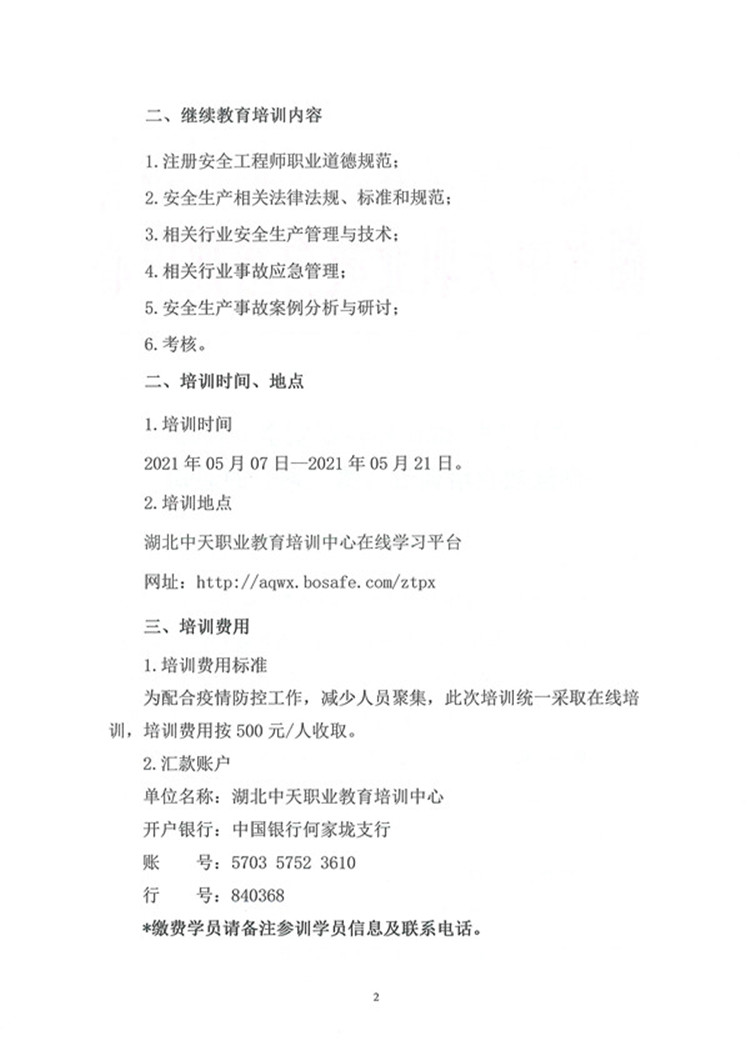 关于2021年注册安全工程师继续教育(第二期)的通知