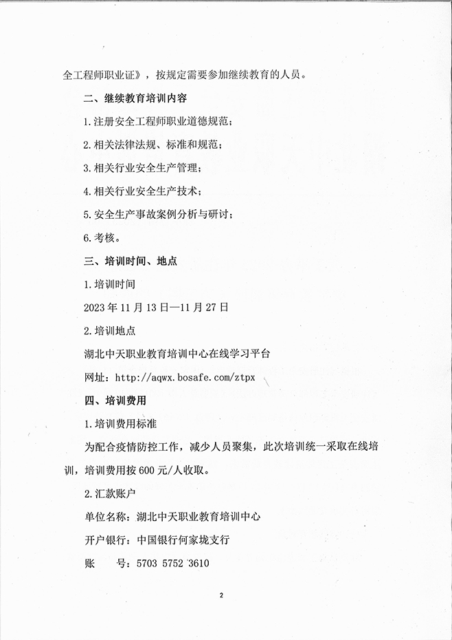 关于举办2023年注册安全工程师继续教育培训班(第二期)的通知